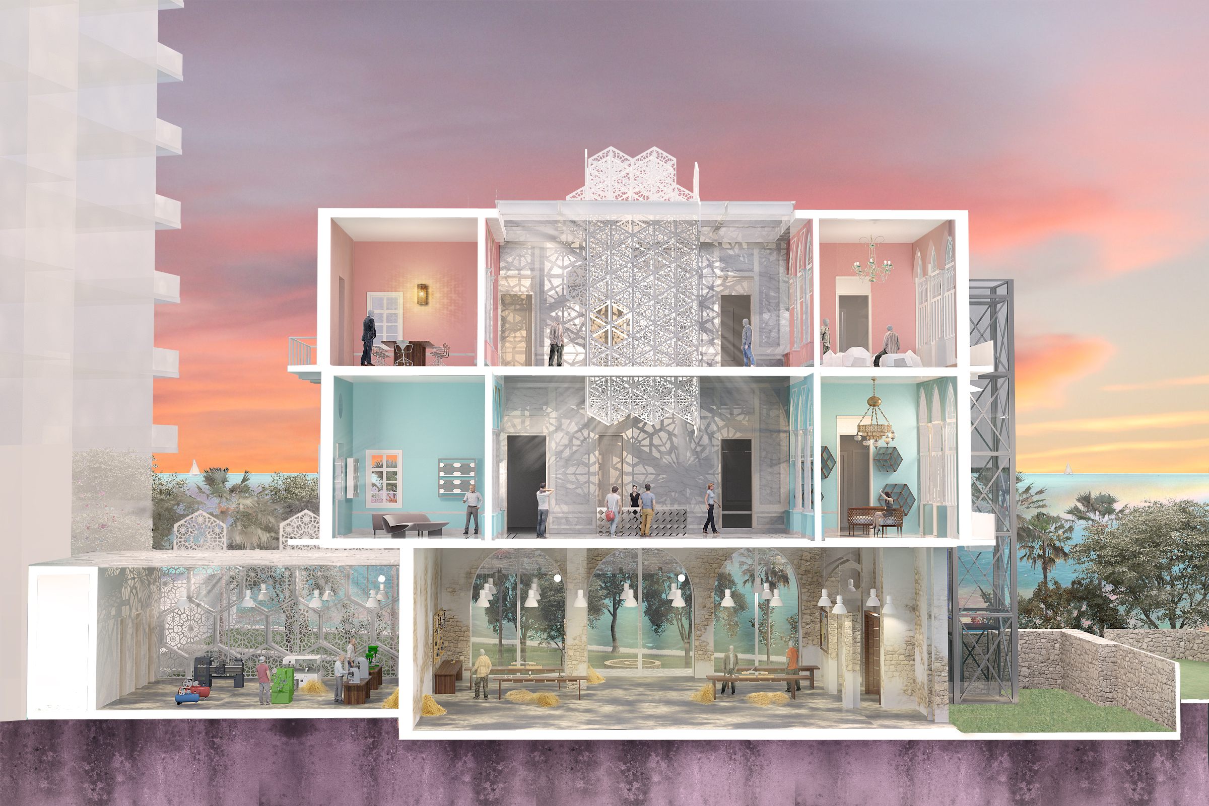 “I am intrigued by the playfulness and underlying interactions between the different elements of the lab system,” said Jneid. “This is translated in the user’s ability to configure different compositions in order to reach a new aesthetic, simulating a new chemical reaction.”
