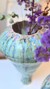 Each vase is hand-built, embracing soft distortion, asymmetry, and imperfection. Their rounded forms suggest familiarity, yet resist precision—like memories that remain but can no longer be fully accessed.